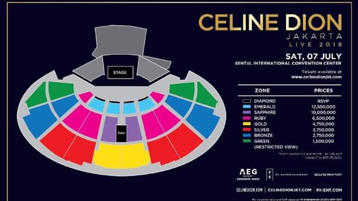 “Confirmed. Celine Dion Live Tour 2018 Tour in Jakarta SAT, 07 JULY 2018 at Sentul International Convention Center. Promoted by : AEG Presents, PK Entertainment and Sound Rhythm. For more information please visit www.celinedionJKT.com and www.pk-ent.com “